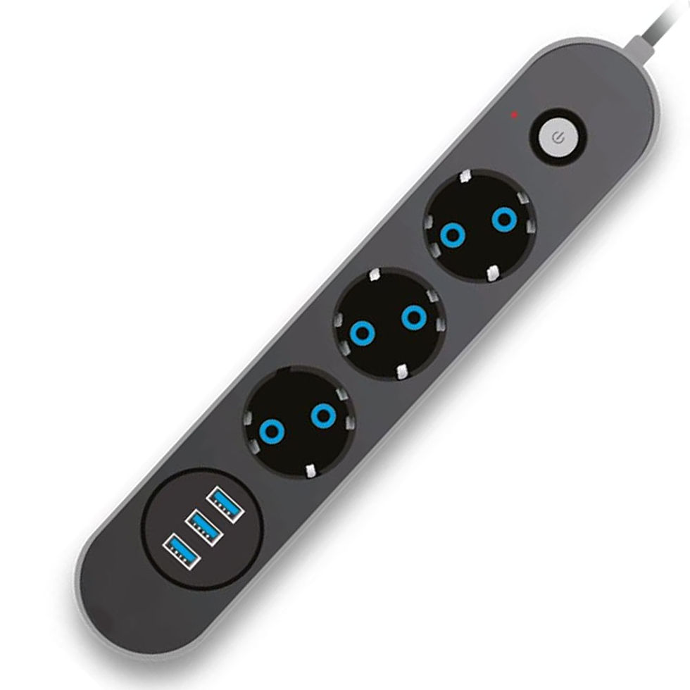 Termal Akım Korumalı Uzatma Kablosu Siyah 3Lü Priz USB'li Uzatma Kablosu Tuşlu